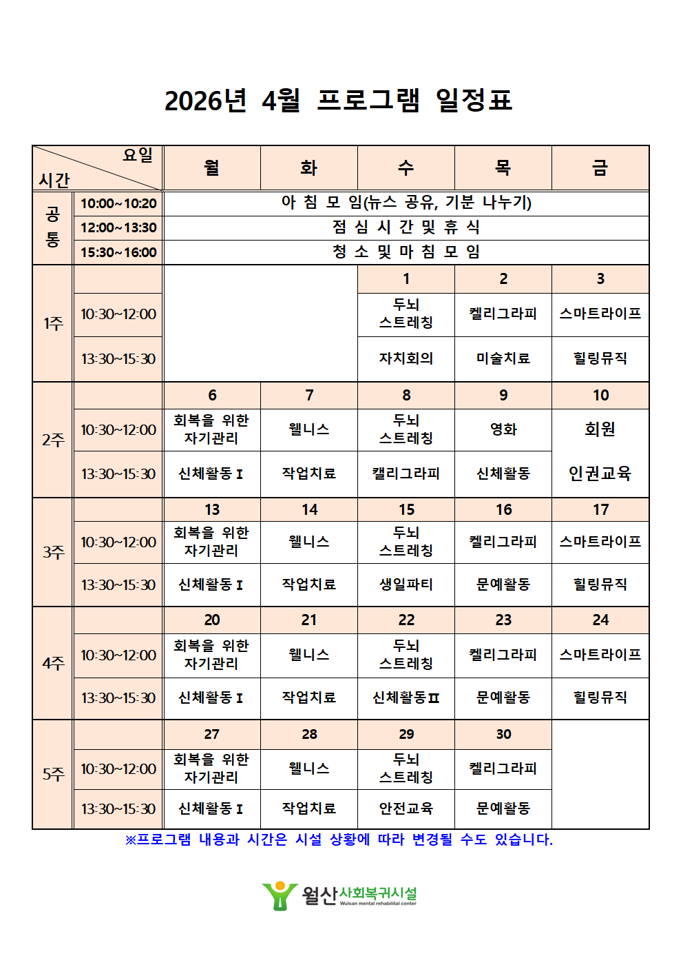 2026년 4월 프로그램일정표